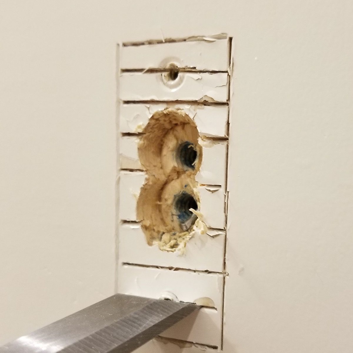 I used to cut out my notch with a jigsaw, but I had a lot of trouble with the blade bending and wood getting tore out on the opposite side, even when I put tape down and scored it with my knife. I’ve had great results ever since I switched over to an oscillating multi-tool. It’s important to cut with a sharp blade, and don’t cut all the way through the door from one side. Instead, cut halfway through from each side. This is the only way you can achieve a perfect notch. Here is how to repair a pocket door.