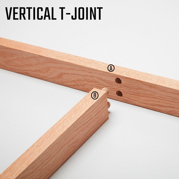 - Mark the parts. Position the parts and mark the dowel locations with a pencil. We’re showing a T-joint here, but most joints require the same steps.