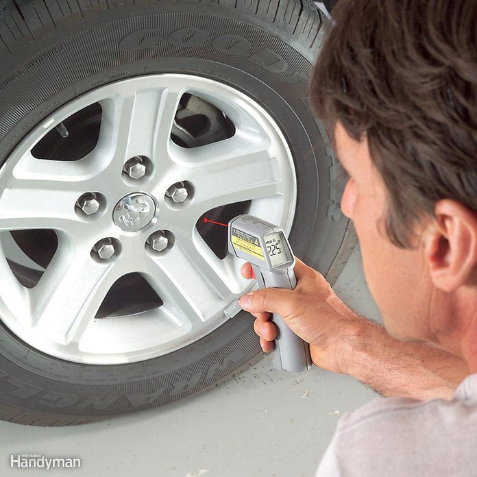 Buy an inexpensive non contact infrared laser thermometer, remove the wheel cover (if equipped), and aim the laser at the wheel hub after a drive. Compare the readings from the right and left sides. If they vary by more than 20 percent, you’ve probably got a dragging brake or a wheel bearing problem, so take it in for repairs.