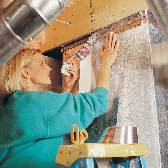 Seal leaky ducts, especially return air ducts, with special metal tape (available at home centers) or high-temperature silicone. Then conduct a backdrafting test to make sure the combustion gases go up the flue. Adjust the thermostat so the burners come on.