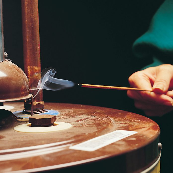 Test your gas water heater for backdrafting while your furnace is off. Turn up the water heater thermostat until the water heater burner comes on. After a minute or more, hold a smoking stick of incense or match up to the exhaust stack. The smoke should be pulled into the stack. Conduct the test with all exterior doors and windows closed and bath and kitchen fans running. If the vent doesn’t draw, call in a heating specialist or plumber to find the problem. Turn the thermostat back down.