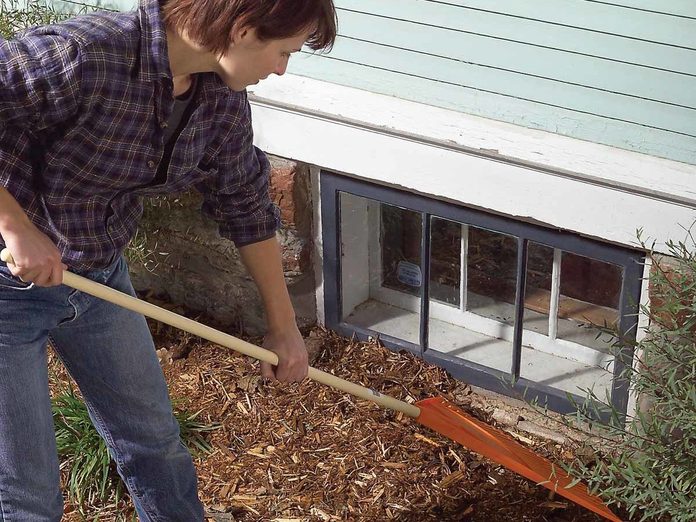 Insects and other small pests need to draw life-sustaining moisture from their surroundings, so they avoid dry places and are attracted to moist ones. If the soil around your house, the foundation and the walls is dry, it’ll be less attractive to insects, spiders and centipedes. Rake moisture-wicking soil and mulch away from the window frames and low wood. Turn your mulch periodically to help keep dampness down, and keep bushes trimmed back as well.