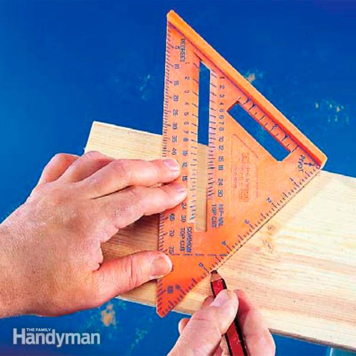 Most people have a Speed square in their tool kit, but very few use them to their full potential when it comes to marking cuts. One example of a quick hack: hook the notch at the end of a Speed square on a nail, and use a pencil to mark small circles. Or to mark angles, tilt the square until the angle on the square’s blade matches the angle you want. Check out How to Use a Speed Square for a detailed walk-through of this time-saver!
