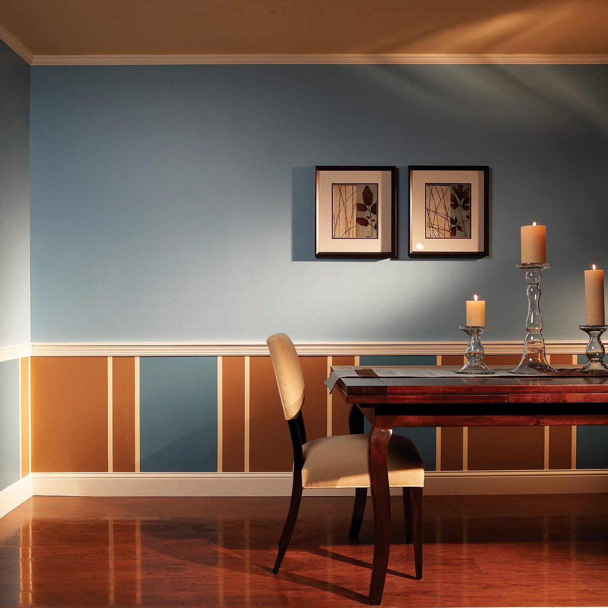By adding two simple lines of trim—a chair rail and a crown molding—you create the perfect framework for any handsome two-color wall combination. This is one of the secrets of fast, easy redecorating.