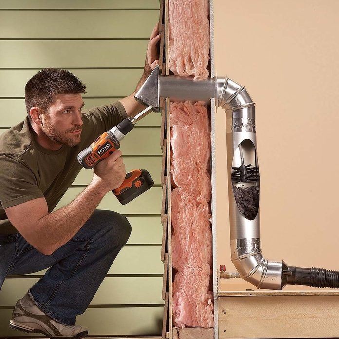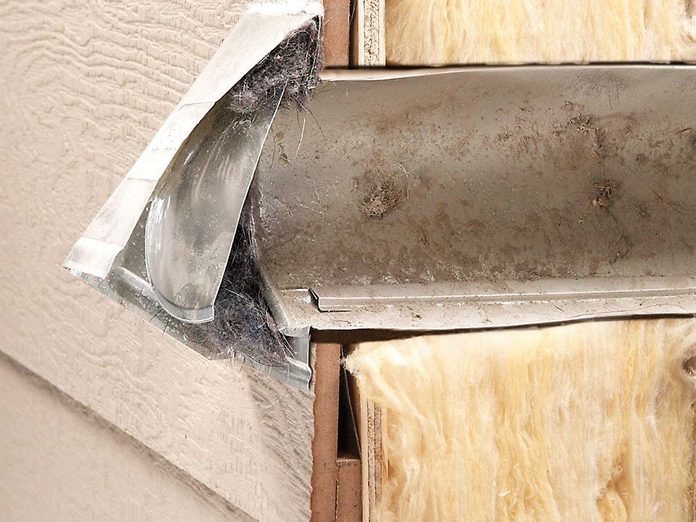 A clogged lint screen or dryer duct drastically reduces the efficiency of your dryer, whether it’s gas or electric. Clean the lint screen after each load and clean the exhaust duct once a year. The cleaner shown here has an auger brush that attaches to a drill to clean out the ducts.