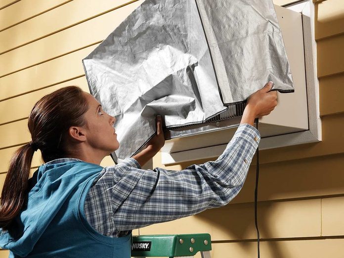 If you decide to leave it in or you have a permanently installed wall unit, grab some removable caulk and a window air conditioner cover to keep out the cold. And if you have a central air conditioner unit, cleaning it annually can also save you energy and money.