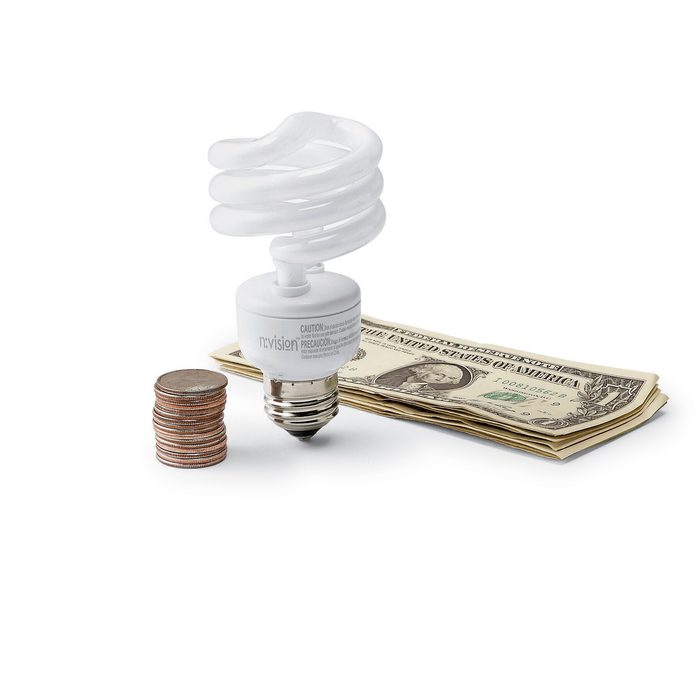 CFL bulbs will provide 10,000 hours of light and use $10.40 of electricity (at eight cents per kilowatt hour). To get the same output with incandescents, you would have to use seven bulbs, which would cost less up front, but the electricity would cost $48. Check out our guide to CFLs so you know what you’re getting into.