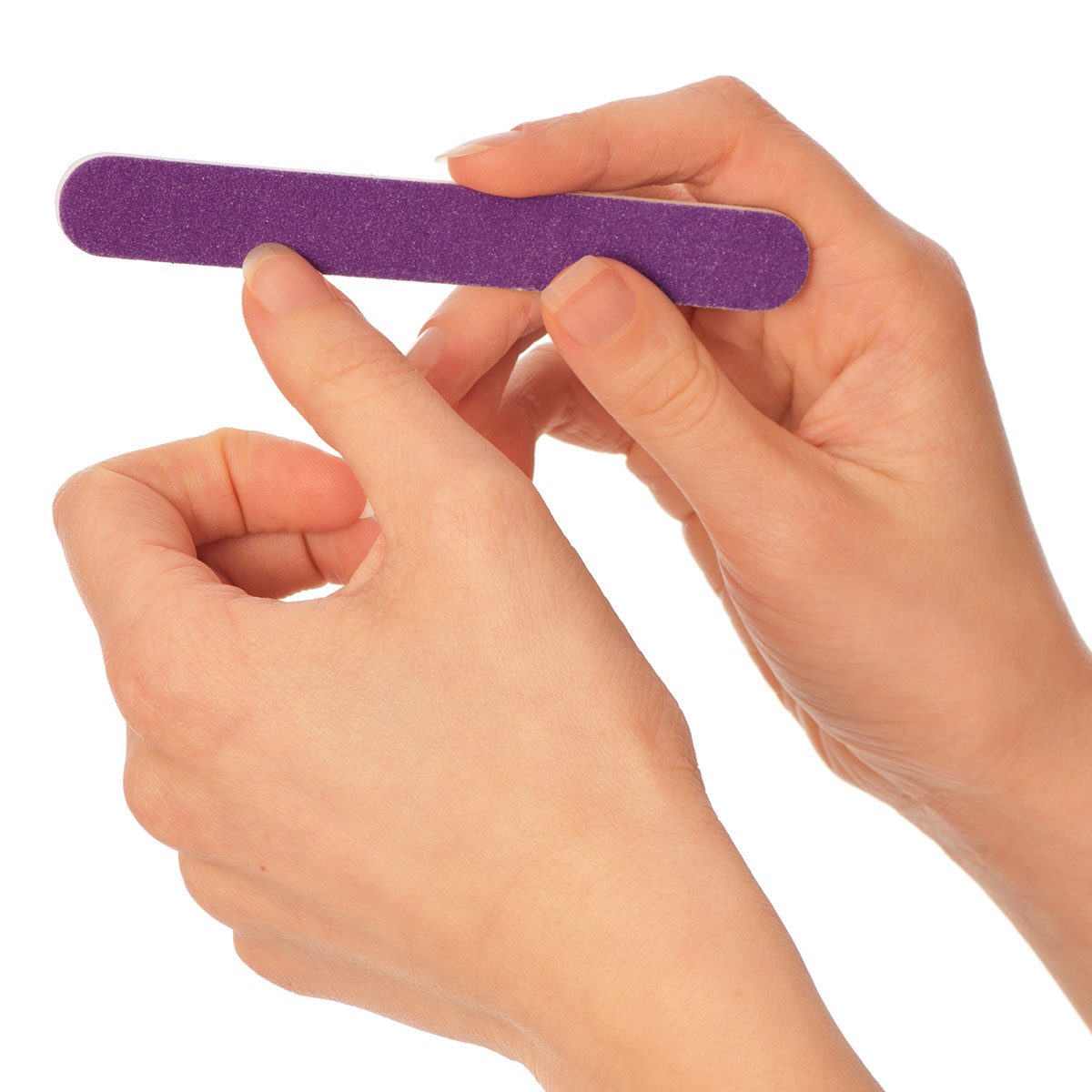 If you don’t have an emery board handy the next time you need to smooth your nails, just raid the sandpaper stash in the garage workshop. Look for a piece marked 120 grit or 150 grit on the back.