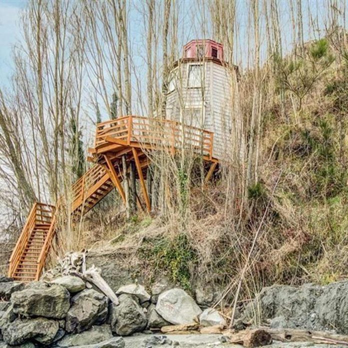 This lighthouse treehouse sits on a site the experienced a devastating landslide back in 1996 but that’s maybe not the primary concern with the property. The owner has been locked in a battle with the city about the treehouse, which is listed for $109,000 on a .26-acre lot. The treehouse is only accessible by boat or walking during low tide and still needs a soil test to remain in place. There is no bathroom, electricity, heat or running water. Instead it relies on a system that catches rainwater, filters it and turns it into potable water.