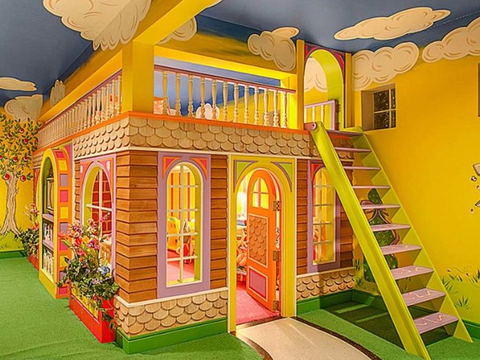 But there will always be sunny skies in the children’s playroom located in Seattle. At least the kids won’t have to go outside to play with this elaborate structure.