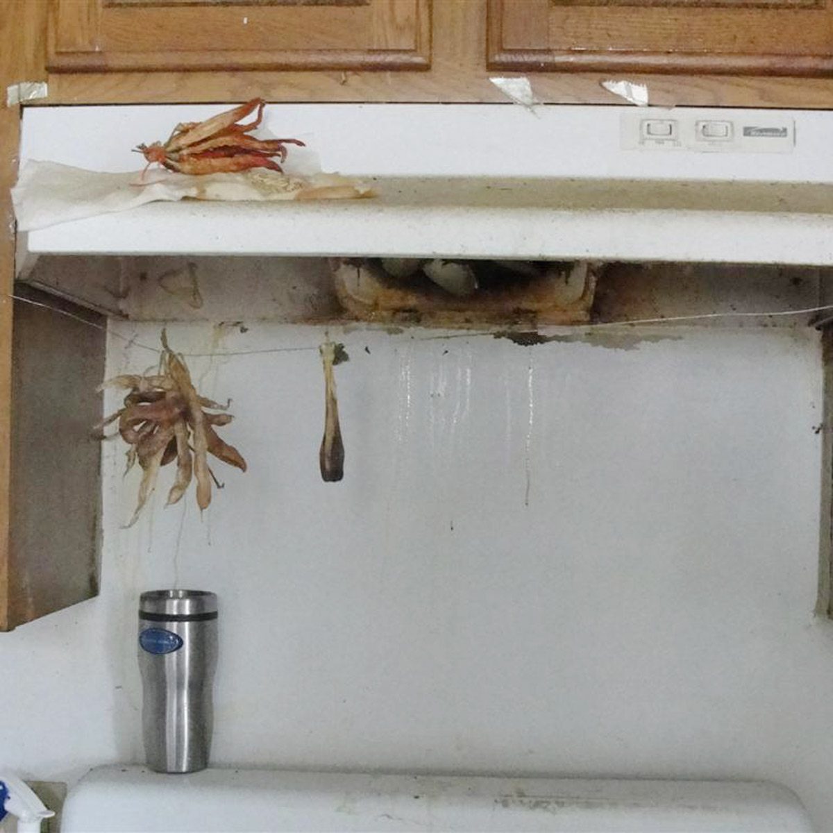 This is just scary and gross. It’s hard to say how the bones ended up in the kitchen cabinet. Try these 11 kitchen cleaning tips to avoid any skeletons in your cabinets.