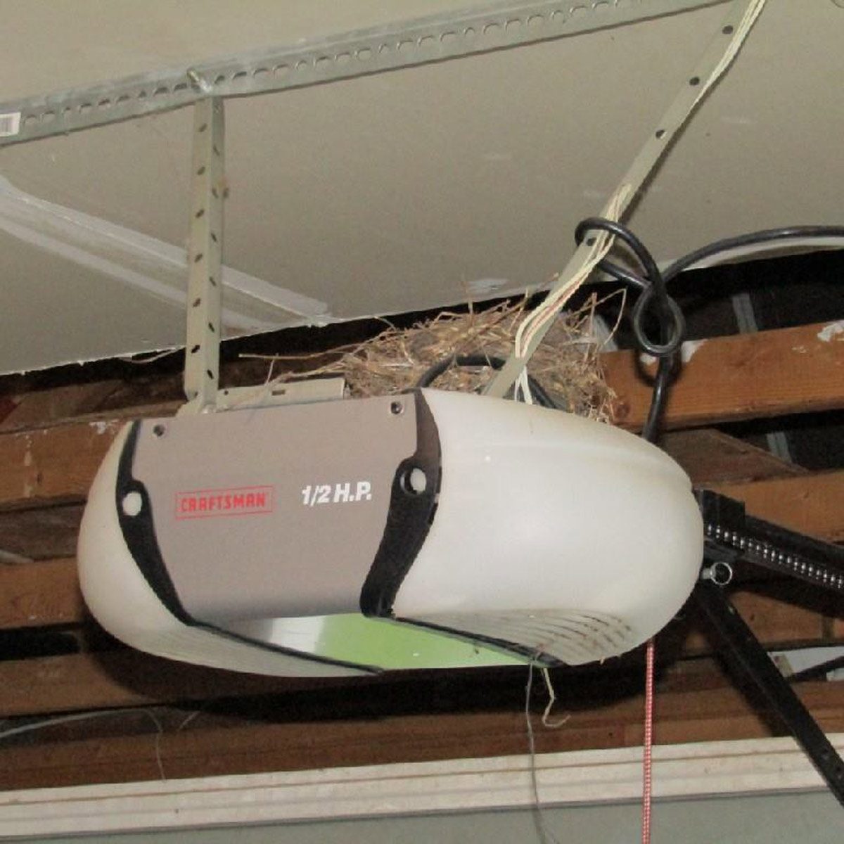 Birds have a tendency to find strange places to nest and the garage is a common place. But atop a garage door opener is a bit unconventional.