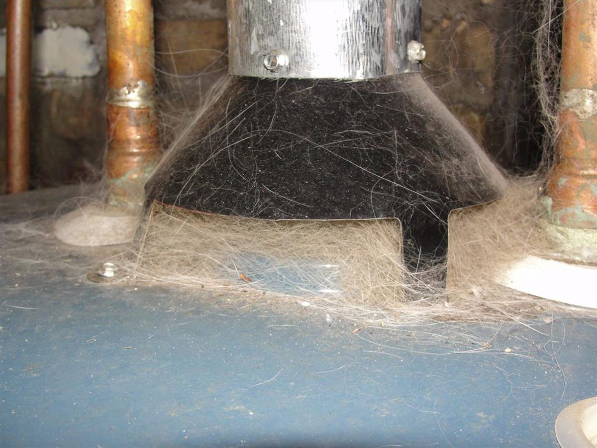 Pet hair is pesky to clean up but at a spot like this, a water heater draft hood, it’s especially dangerous. Here’s how to subdue pet hair at home.