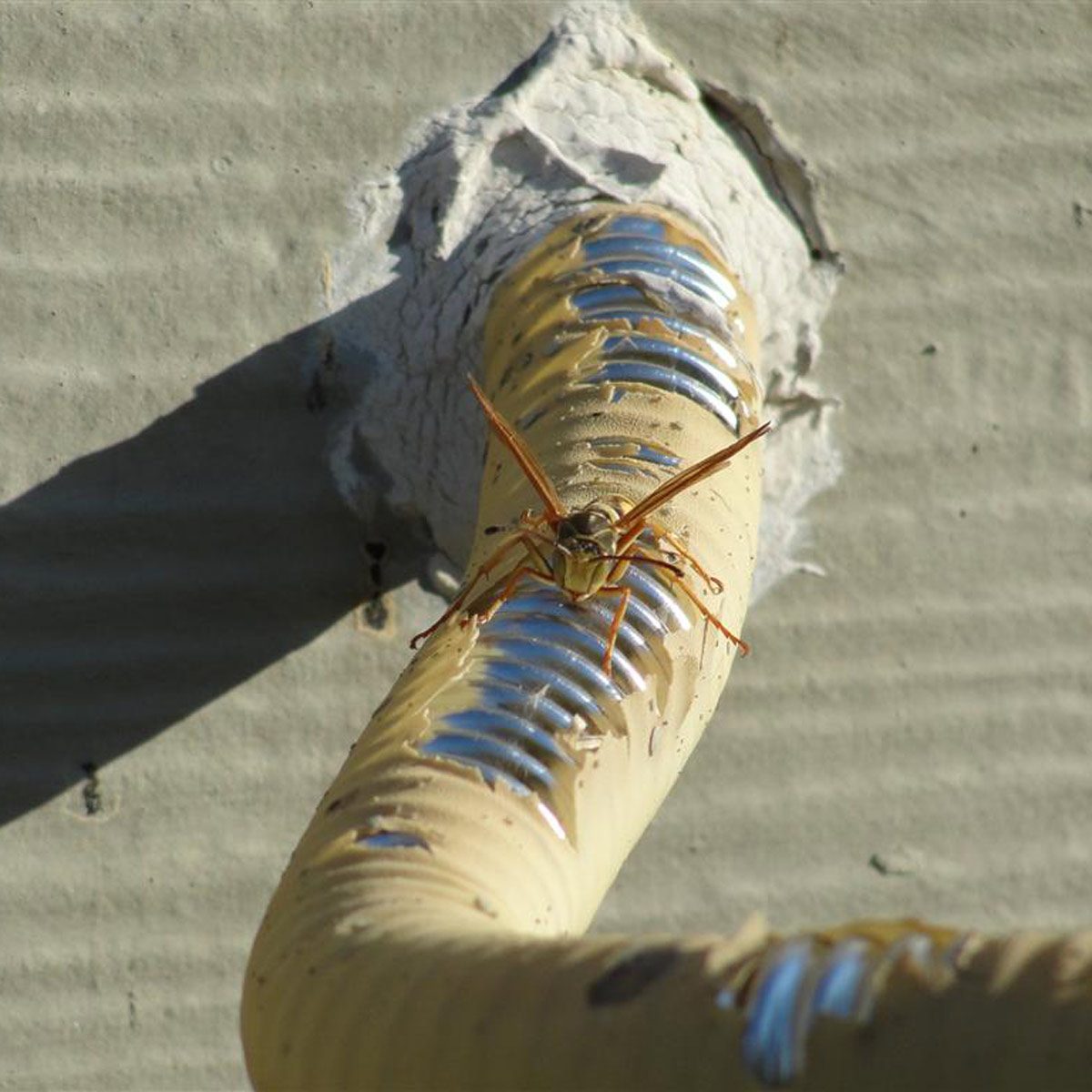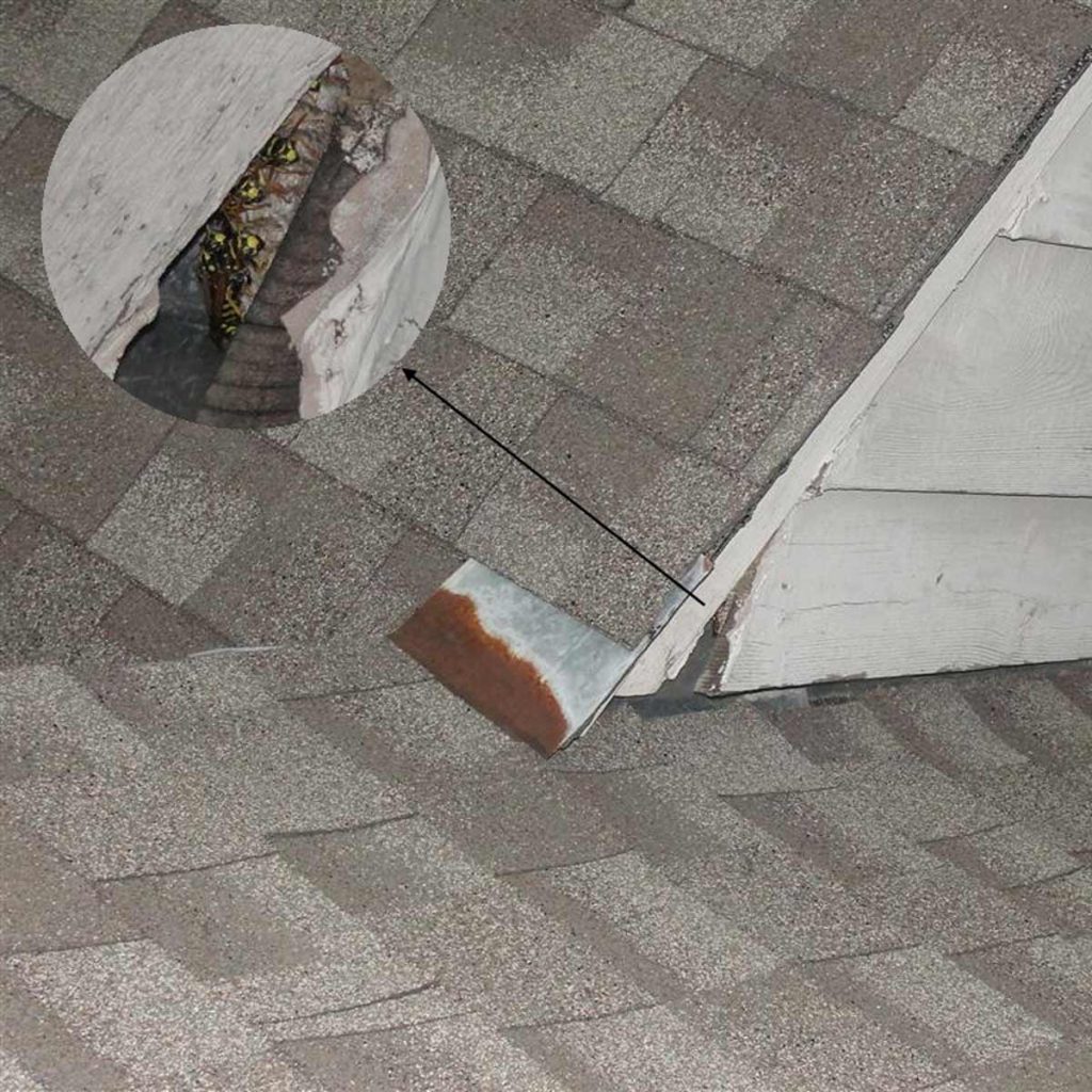 You never know where wasps will set up shop, especially in this spot on the roof.