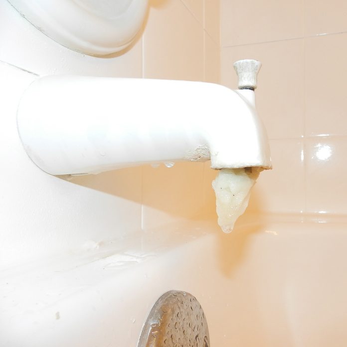 We want to believe that this is just frozen water dripping through the bathtub but it still looks strange and gross. Obviously something is wrong and this person should consult this complete guide to bathtub repair.