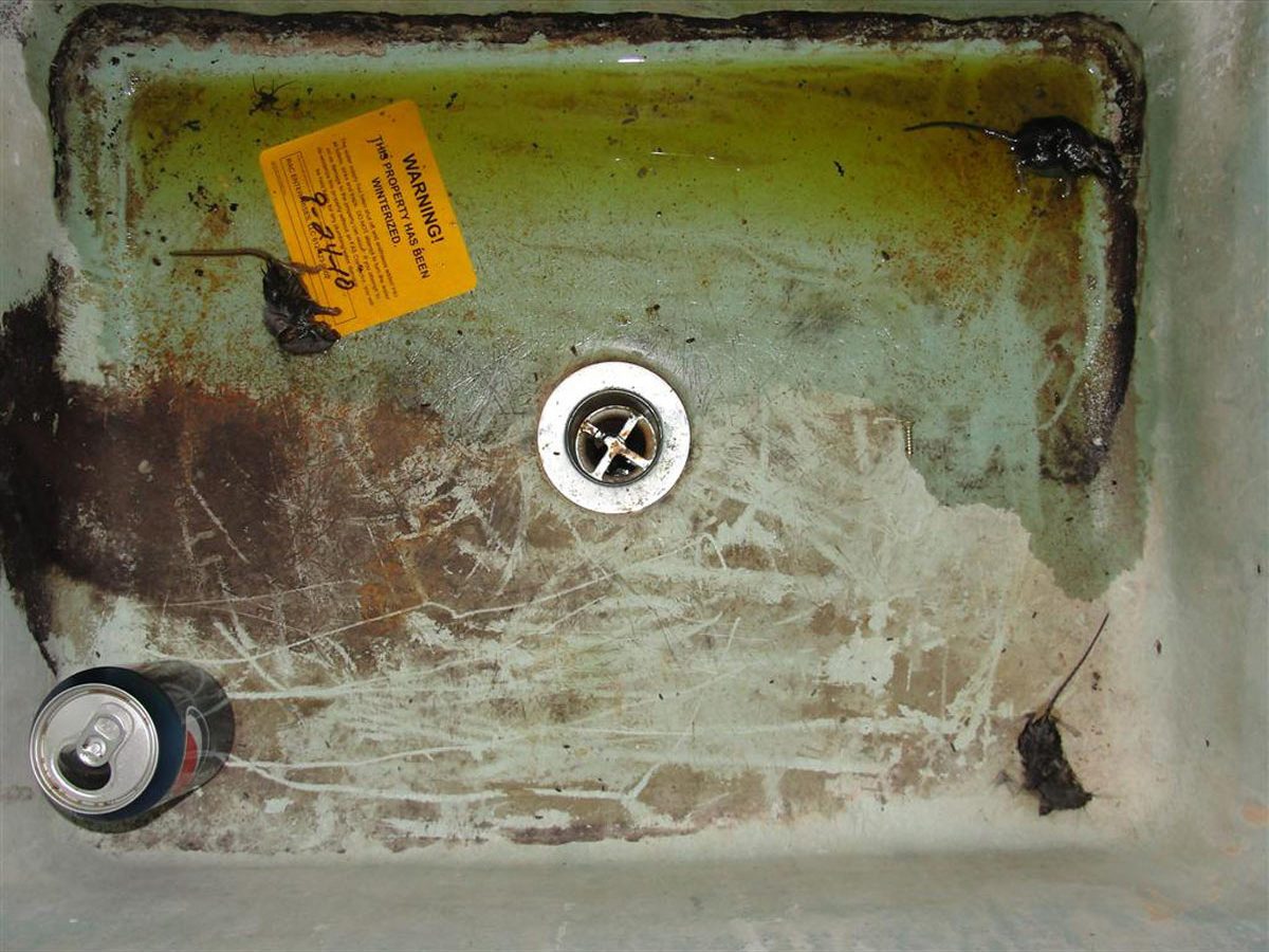 Who’s to say how these three dead mice wound up in this sink but it’s pretty gross. This sink probably smells something fierce, just like your garbage disposal can if you don’t know these tips on how to clean a garbage disposal.