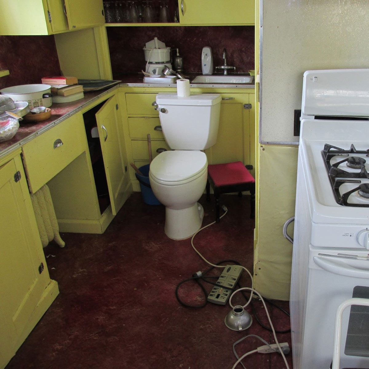Maybe you’ve wished the toilet was a step or two closer in an emergency but this might cause some trouble come dinner time. Well, the good news is, it doesn’t look like this toilet is hooked up.
