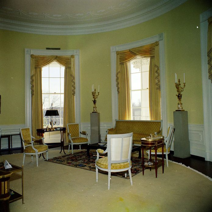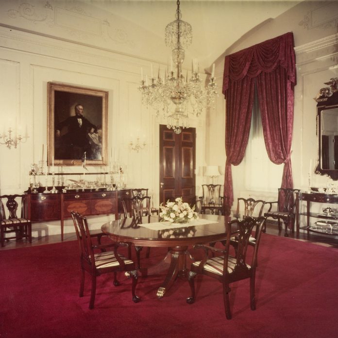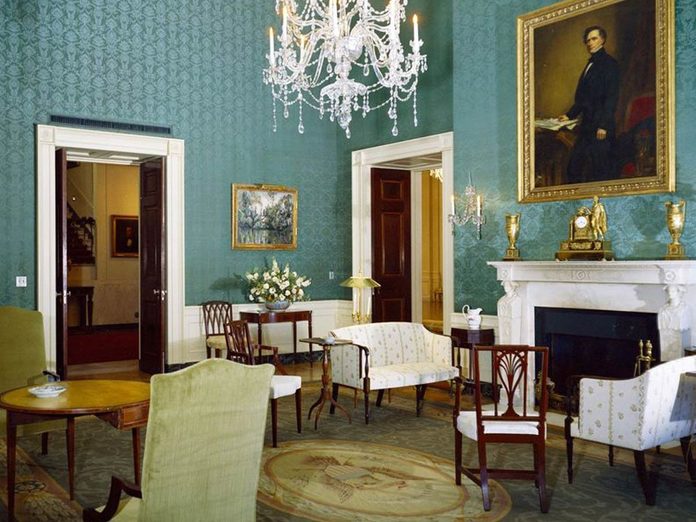 The Red Room was almost completely designed in a French style. Revamps included pinkish-red silk upholstery for the wall. The room held a gueridon, a small table with a circle top that is supported by columns or by human sculptures or mythological figures. There are sofas that belonged to Dolley Madison and George Washington’s granddaughter, Nelly Custis. Jackie brought in a French empire chair that was in White House storage and carpet woven in France was donated after Andre Meyer funded it in exchange for a meeting with Jackie. A French chandelier from 1820, French bouillotte table lamps and French torch lamps were also brought in. Window treatments of straight panels of cerise silk suspended from a gilded wood rod and rings got added, too. Here are 10 really cool ideas to update your window treatments.