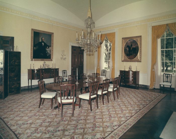 The committee also placed Theobald Chartran’s painting Signing of the Peace Protocol Between Spain and the United States, August 12, 1898 in the room along with copies of framed treaties signed in the White House. You’ll want to know these 13 hacks for hanging a picture next time you need to do it.
