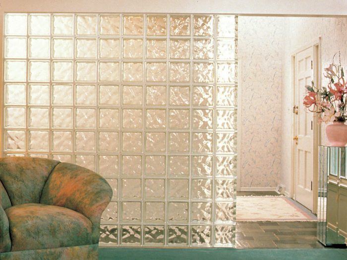 We’ve shown any number of glass block projects through the years, like a glass block shower and a glass block basement window. Glass block walls appeared in homes in a variety of ways in the ’90s. We wrote back in ’96 that glass block hit an all-time low 20 years ago but that it’d returned with a splash. So while it maybe didn’t appear in every home, it certainly was trendy.