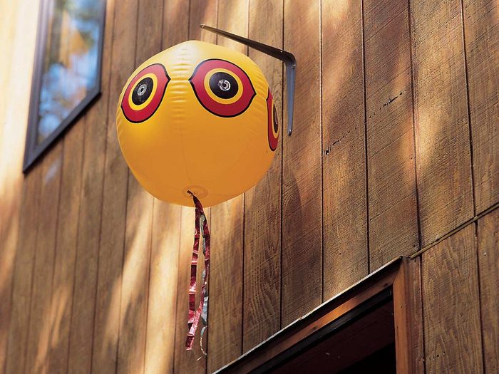 Get a a bird scare balloon at Amazon if you want to drive away woodpeckers or check out some more hints on how to deter woodpeckers.