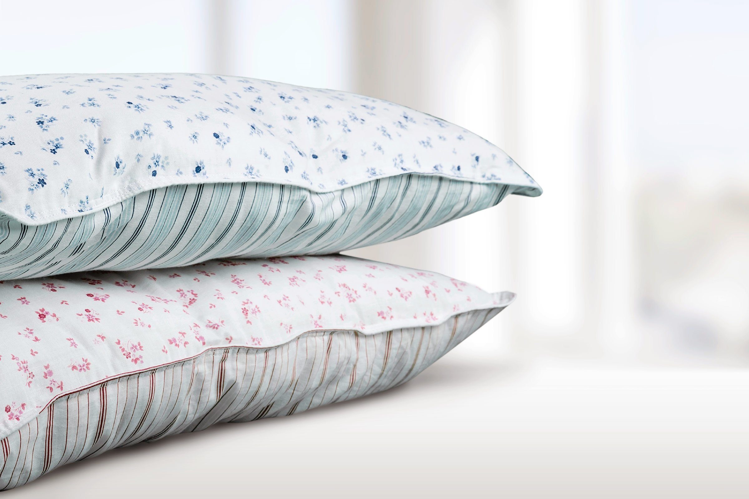 Wash pillows two at a time in a warm-water gentle cycle. To ensure you’ve washing out all the soap, add an extra cold-water rinse and spin, advises Good Housekeeping. To fluff things up, dry the pillows on low heat, along with a few rubber dryer balls.