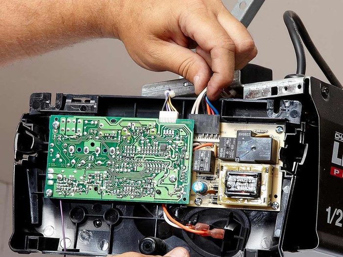 Once the circuit board is removed, pop out the old socket by depressing the clip that holds it in place. Remove the two wire connections and install the new socket. Replacement sockets cost less than $15.