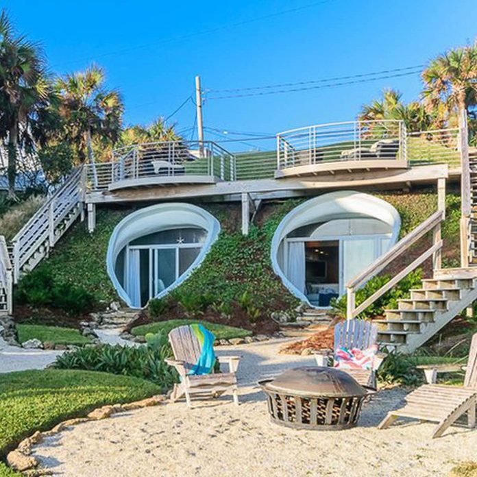 William Morgan, a modernist architect, designed the duplex in the ’70s and it quickly caught the attention of many. It even led to Playboy using the duplex built into a sand dune in an issue. There are no right angles with the house and a nautilus shell inspired the interior design. Each duplex is 750 square feet with lofted bedrooms and closets built into the wood-paneled walls. At 750 square feet, the duplex might have you thinking it’s not much bigger than some of these incredible tiny houses, like the one in Florida that is built with old airplane material.