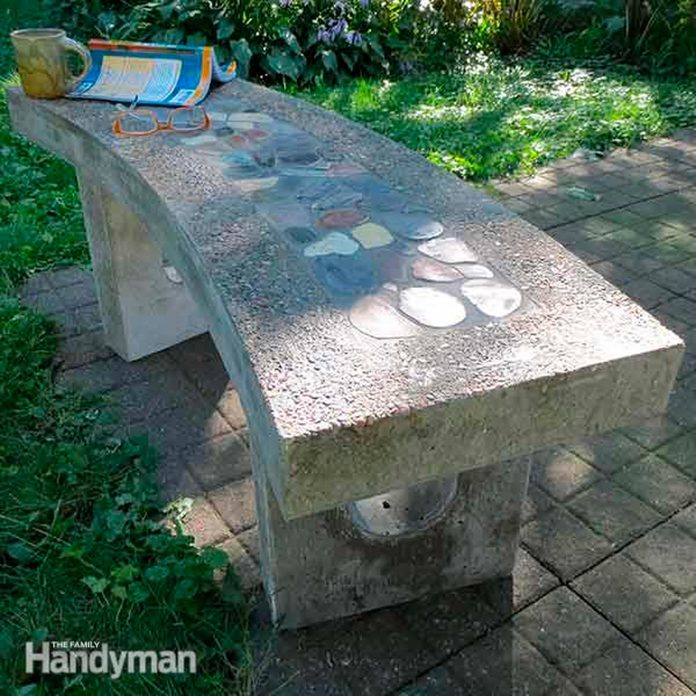 If you build this beautiful concrete bench with stone inlay, it will be around for many decades to come. Here are the complete step-by-step instructions so you can make a bench like this for your yard or garden.