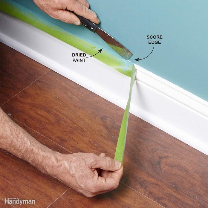 The solution is to let the paint dry completely and then score the edge of the tape with a putty knife before you pull it off. This will break any bond that has formed with the paint and ensure that the painter’s tape will come off cleanly without damaging your paint job.