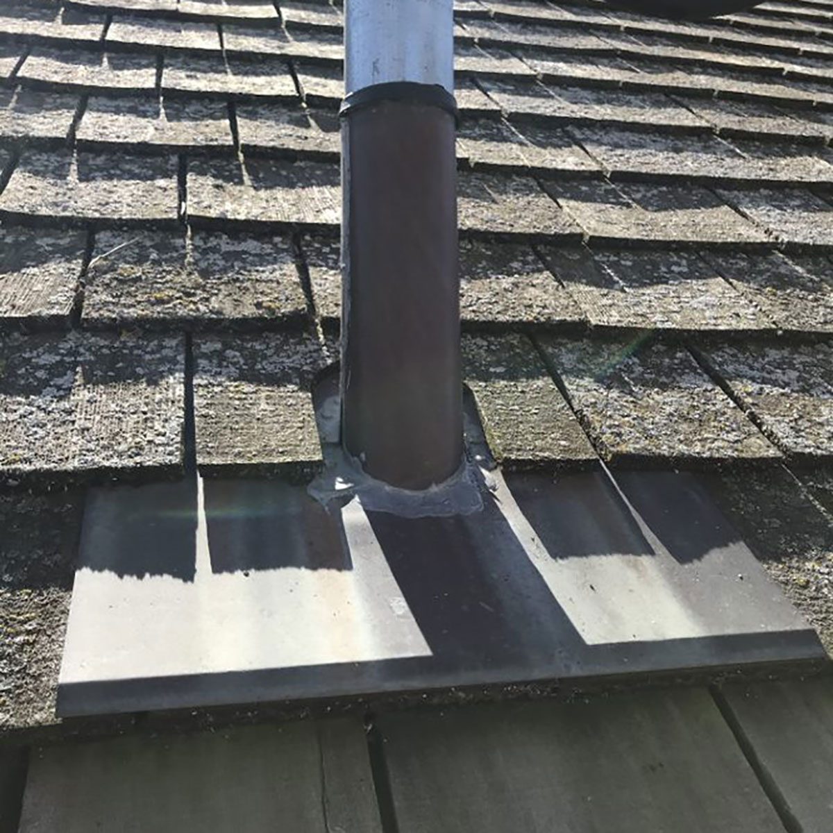Electrical service masts that penetrate the roof must have a roofing boot properly secured at the roof line to prevent water leaks. The roofing boot must be properly sealed, glued and screwed flush with the roof membrane. If nails are used, they must be sealed properly. Nails can corrode over time and the membrane can split, so Williamson advises using the right tools for the job and taking the time to be sure it is properly sealed. If your mast has bracing, “don’t forget to seal it with flashing at the roof line intersection,” he cautions.