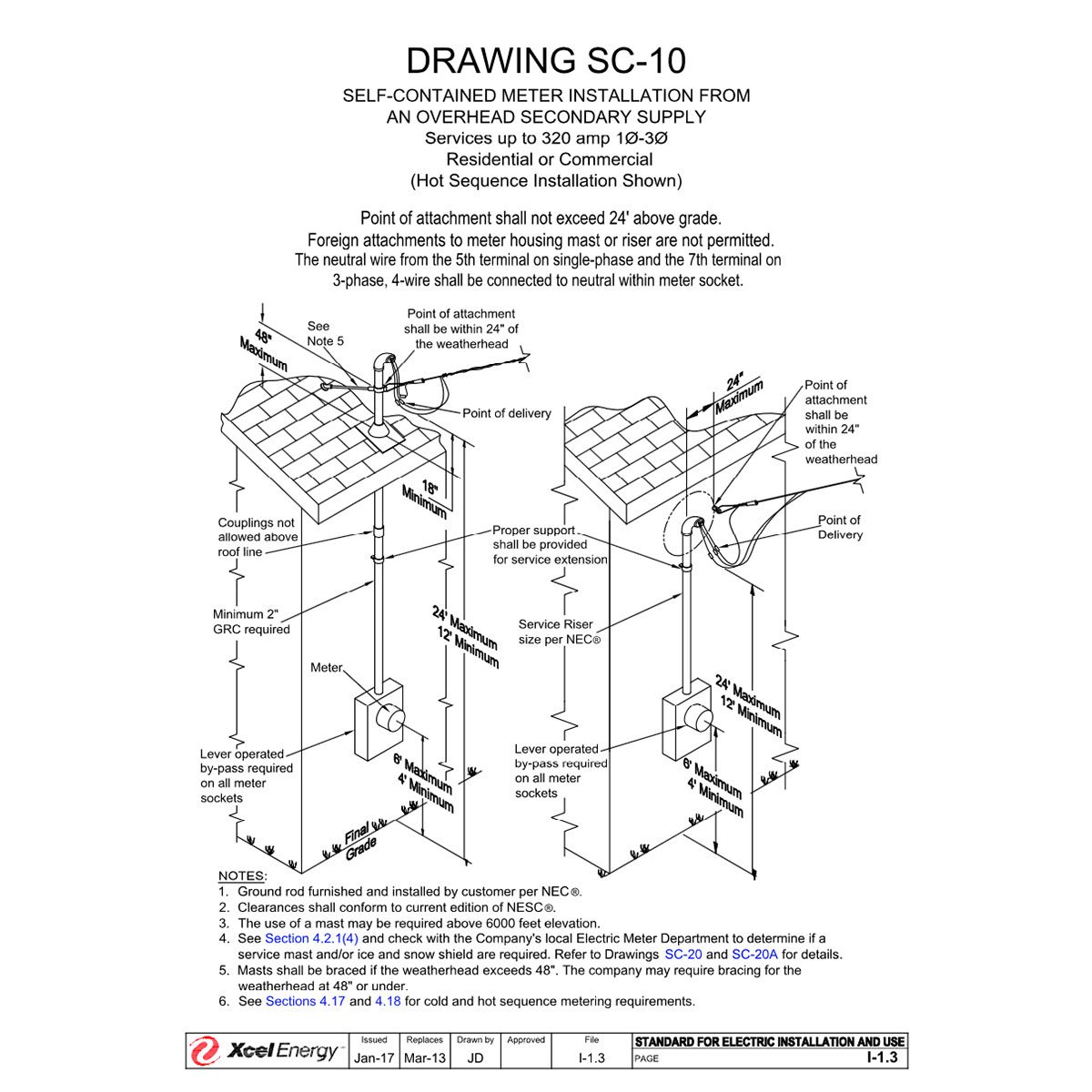 - When overhead service drop conductors terminate at a through-the-roof raceway or mast, there can be a maximum of six feet of conductor length over the roof;