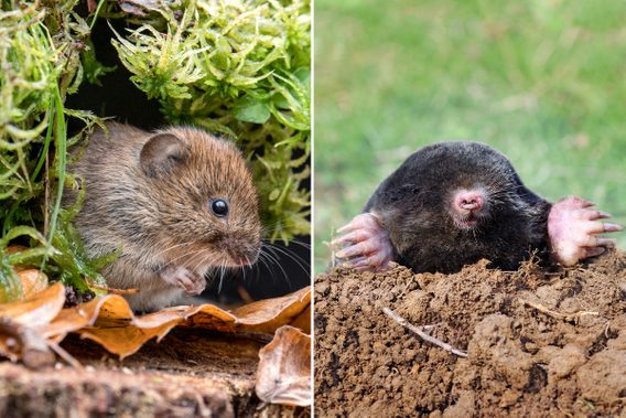 A good way to distinguish voles vs. moles? Moles eat "meat," like grubs, earthworms and insects. Voles are vegetarians. And...