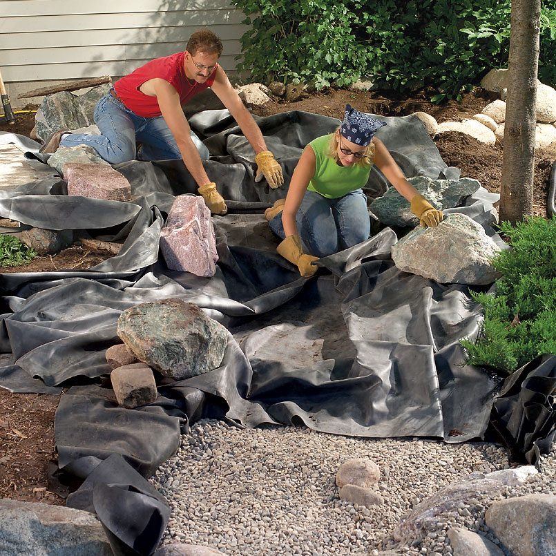 - Remove sharp objects from the bottom of the basin, then lay in the underlayment and liner.