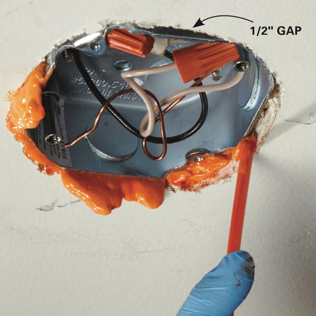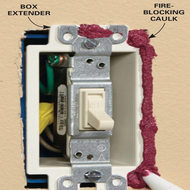 If the electrical boxes aren’t mounted flush with the drywall, adding a box extender will make them easier to seal. They’re available at most home centers for single, round and multiple-gang boxes.