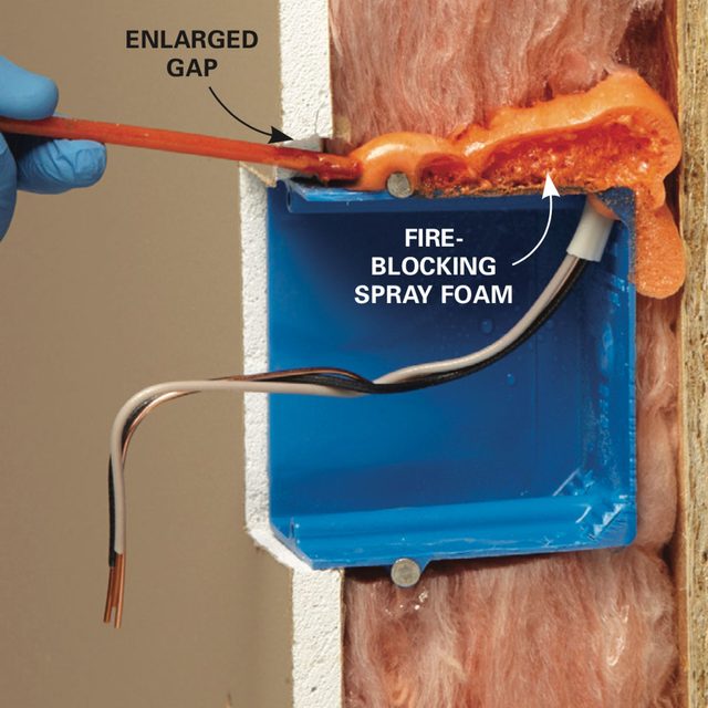 The small air gaps around electrical boxes on exterior walls and ceilings leak more air than you might imagine. A mere 1/8-in. gap around just six ceiling boxes is the equivalent of cutting a four-inch hole in your ceiling. Think of the amount of heat you'd lose! When you combine that with the leaks around all the electrical boxes in outside walls in your house, it's no wonder your house feels drafty.