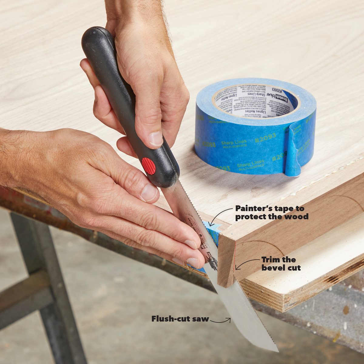 - Protect the wood from the saw teeth with a layer or two of painter’s tape.