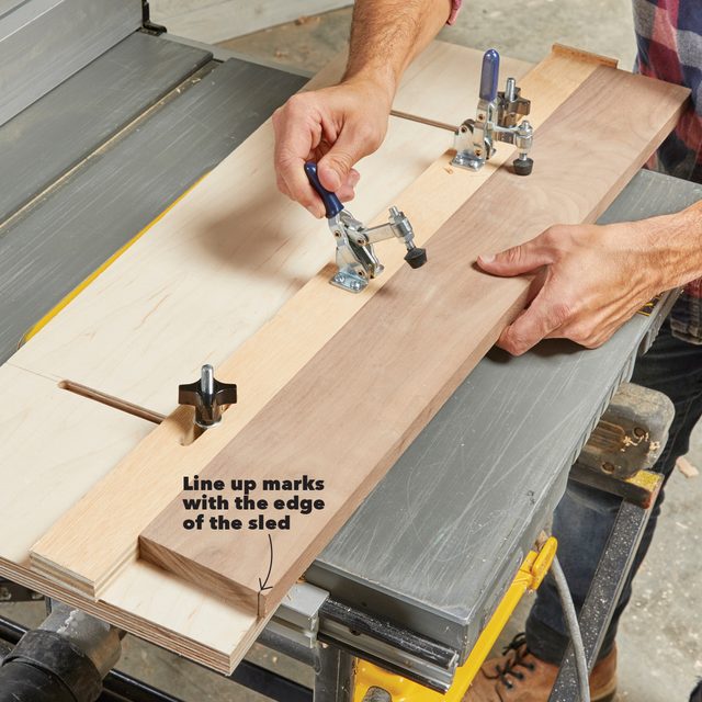 - Cut two slots in a two-inch-wide fence. The fence slots should line up and be perpendicular to the slots in the sled.