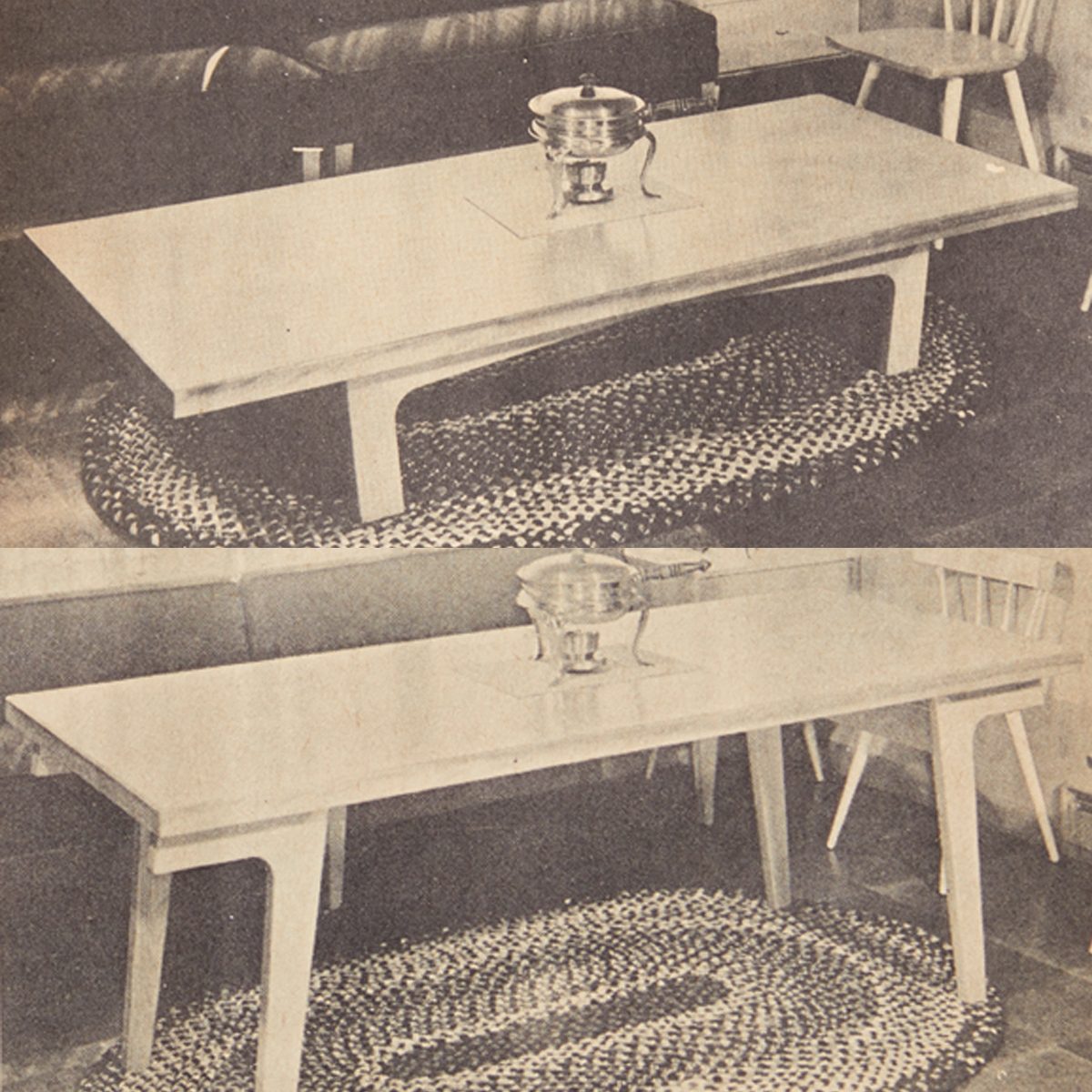 I’ve got a large family, and when we all gather it’s become tradition to haul a card table up from the basement and evict the coffee table to make more space for dining. Our next big get-together will be different. Instead of shifting furniture around, I’ll just flip up the coffee table legs and round up the kids!
