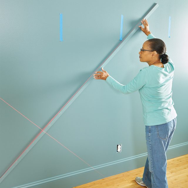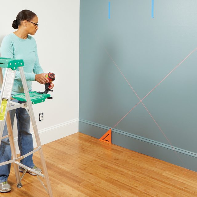- Set up a laser level to get the long lines accurate. We used a self-leveling cross-line model from Skil.