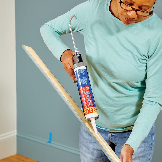 - Note: We used a fast-grabbing construction adhesive (Loctite Power Grab) for this project. It has a fast initial tack so it stays put as soon as you press it into place. If necessary, you can still shift it until it cures.