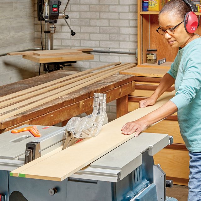 - Using your design plan, estimate how many linear feet of strips you’ll need and rip them to 1-1/4-in. wide on the table saw.