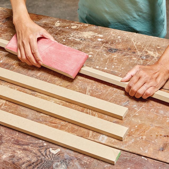 - A sharp corner doesn’t hold paint well, so sand the sharp corners on the faces of each strip with a sanding block. It doesn’t take much — just enough to turn the sharp corner into a tiny bevel.