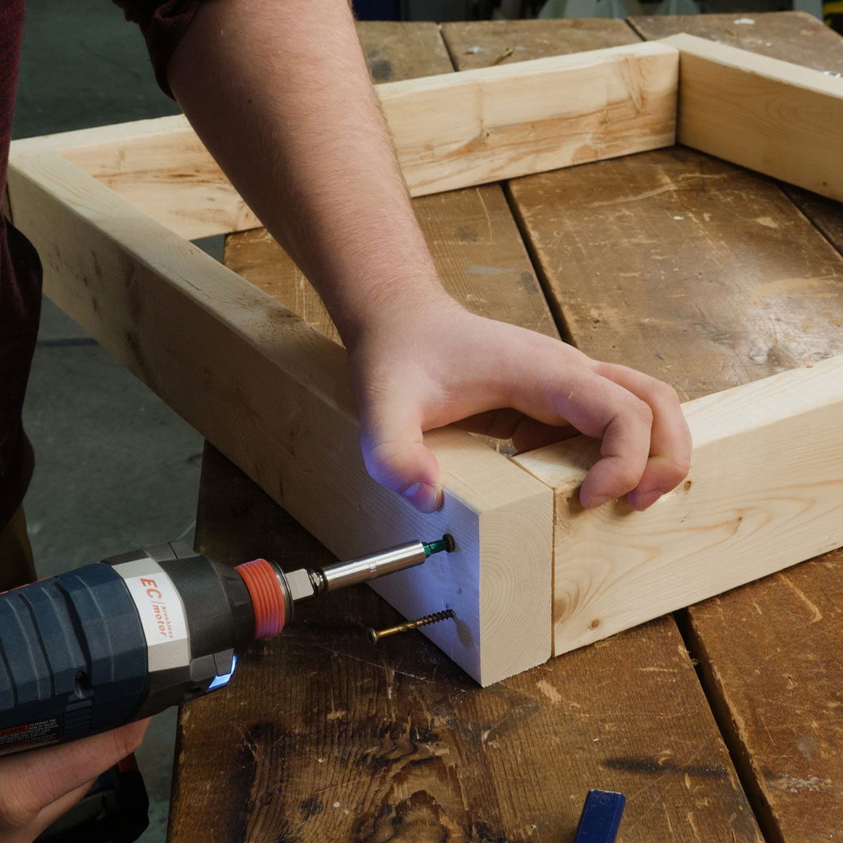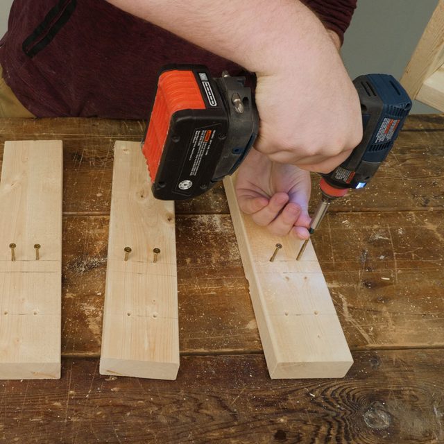 - Once you’ve marked up your boards, it’s time to pre-drill some holes.