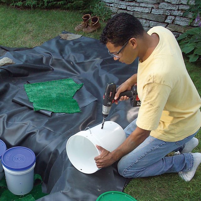 • Use a spade bit or a twist bit to drill 1/2-in. drain holes in all the pails.