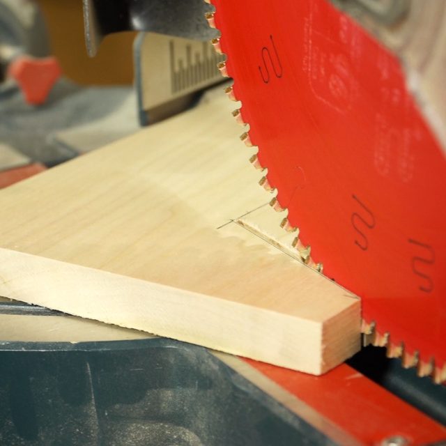 - Cut the angles using a circular saw or miter saw. Be sure not to cut past the horizontal line.