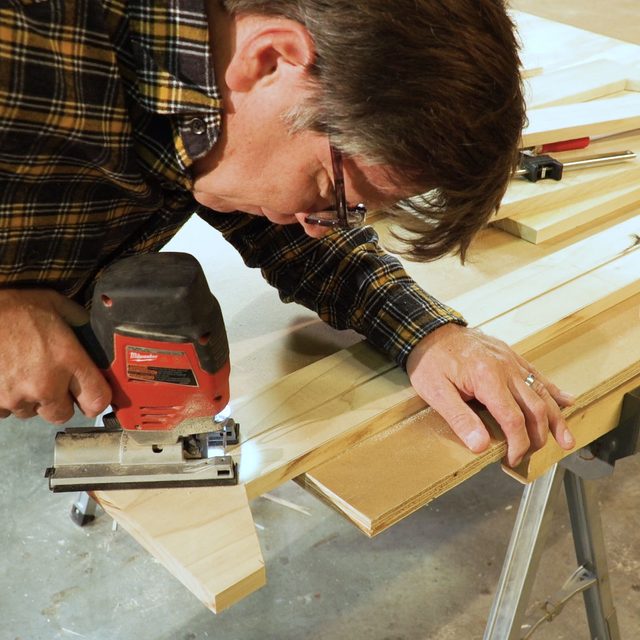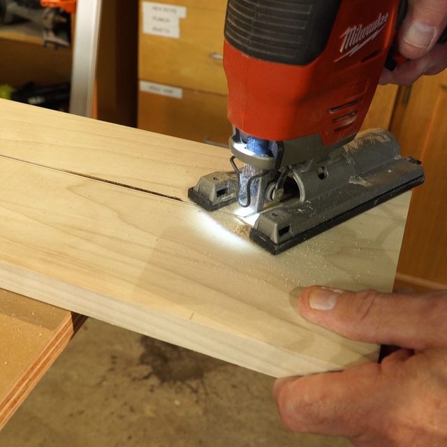- Cut on the lines as you did previously. Option: A jigsaw can be used for all the cuts.
