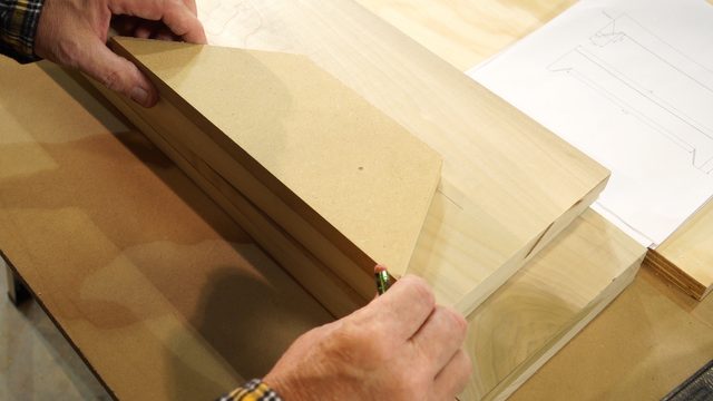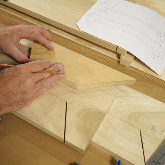 - Using the side leg board you just cut as a template, lay it on the top of the other side leg board and trace the pattern onto the face of the board.