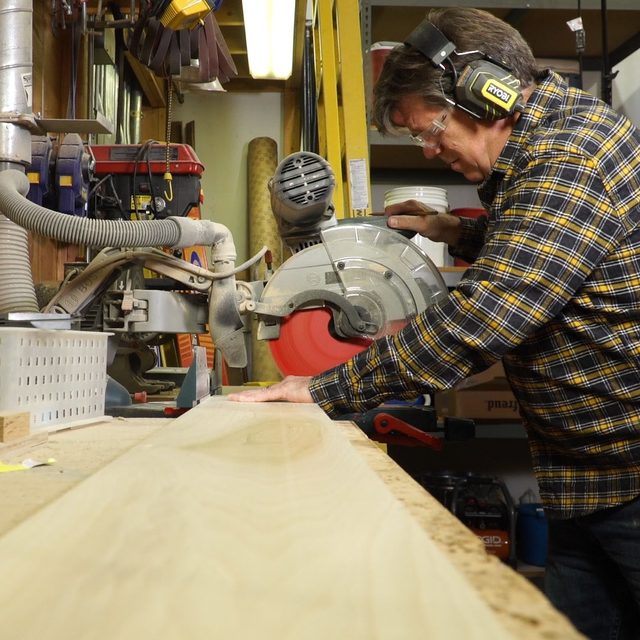 - Cut two pieces of the 7-1/4-in. poplar at 41-1/2-in. for the front and back legs.