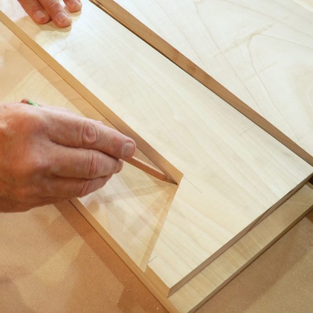 - Connect the 3/4-in. lines with the 2-1/4-in. line at a 50 degree angle using an adjustable square, or make a 50 degree template with your miter saw.